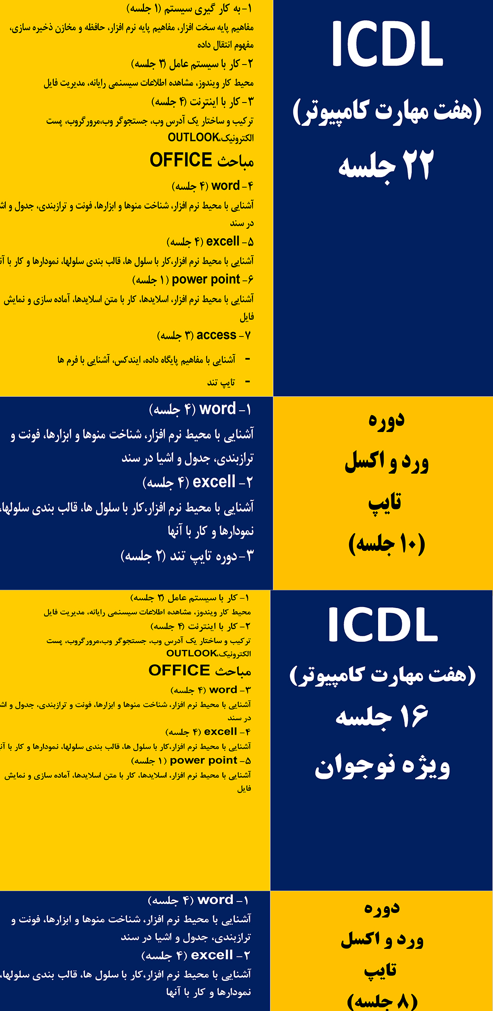 دوره جامع هفت مهارت کامپیوترICDL آموزش حضوری و غیر حضوری با دربافت مدرک بین المللی کامپیوتر